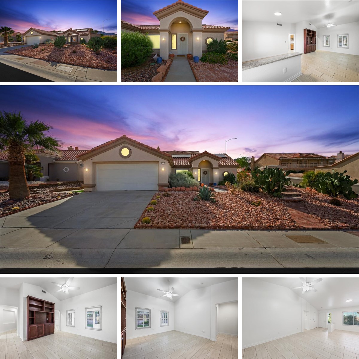 This beautifully updated single-story home sits on a low-maintenance corner lot in the vibrant 55+ Sun City Summerlin community. With 1,402 sq ft, it offers 2 bedrooms, 2 bathrooms, and a 2-car garage on an 8,276 sq ft lot. Recent upgrades include new tile and carpet, fresh paint, and a fully renovated kitchen with new countertops, sink, faucet, disposal, and stainless steel appliances. You'll also find new ceiling fans, modern lighting, window treatments, new toilets, and upgraded shower doors in the primary bath. Enjoy the private enclosed patio and easy-care desert landscaping. Sun City Summerlin offers a wide range of amenities, including clubhouses, fitness centers, indoor and outdoor pools, tennis and racquetball courts, shuffleboard, mini-golf, and scenic walking paths.